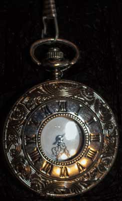 This battery powered pocket watch provides the look of an antique pocket watch with the convenience of modern battery power. It uses a standard A4 watch battery.