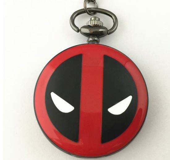 This Deadpool face watch is about 1.8" across, and is powered by a standard A4 watch battery.