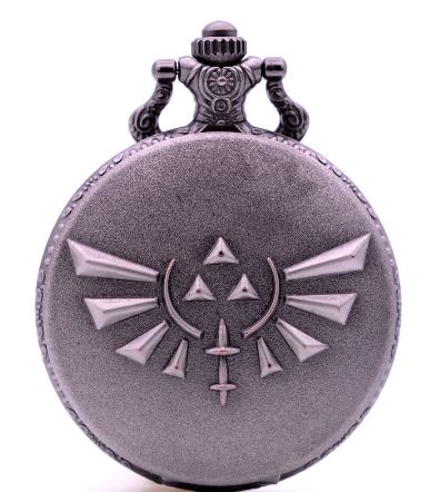 This watch is about 1.75" across, and has a grey case with the Hyrulian Crest on the front of the case, and Link on the watch face. It is powered by a standard A4 watch battery.
