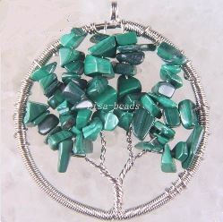 This large necklace uses small Malachite chunks as the leaves of the tree.
