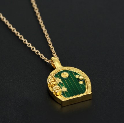 This version of the door is green on gold tone. We also have a version that is green on silver tone.